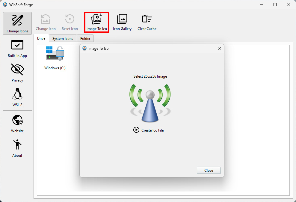 💡 Pro Tip: If you only have PNG or JPG images, don't worry. You can use the WinShift Forge Image To Ico feature to instantly turn any 256x256 image into a compatible .ico file.