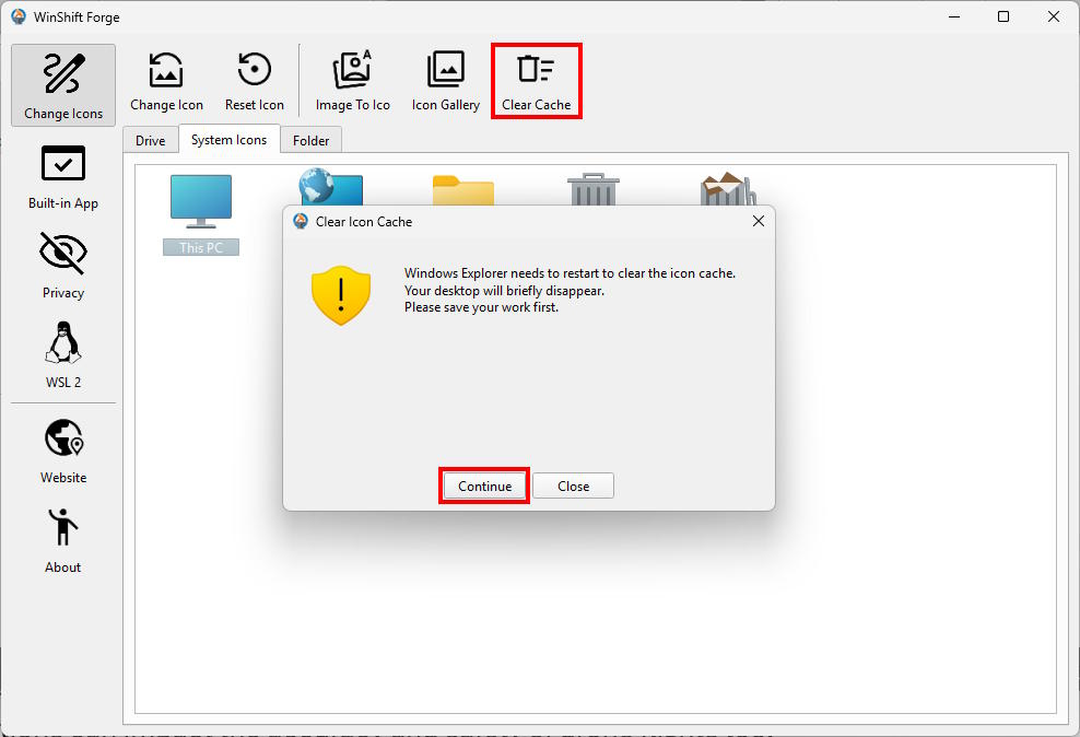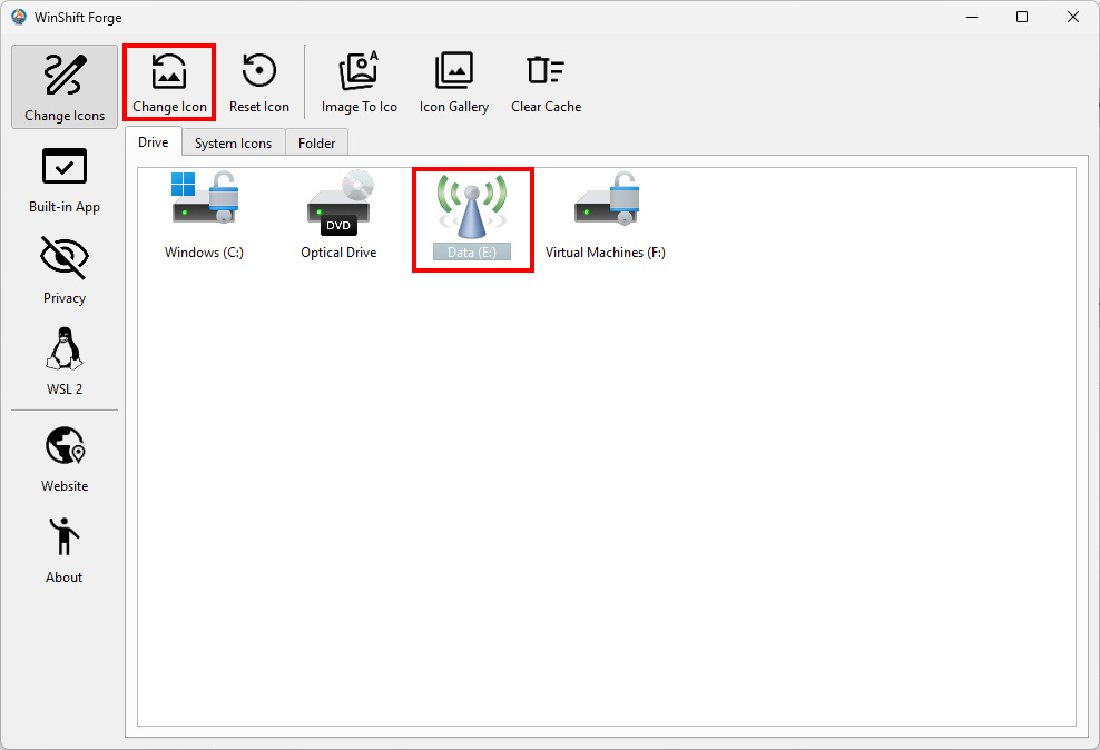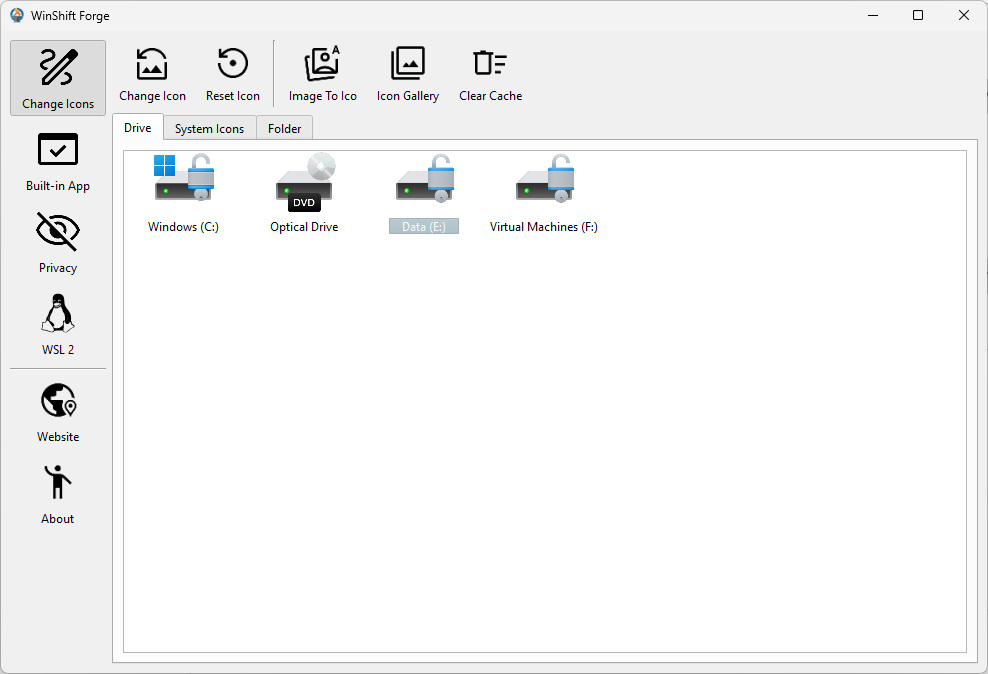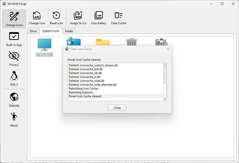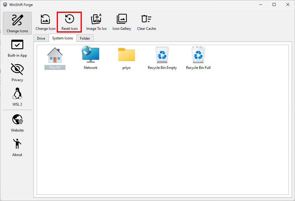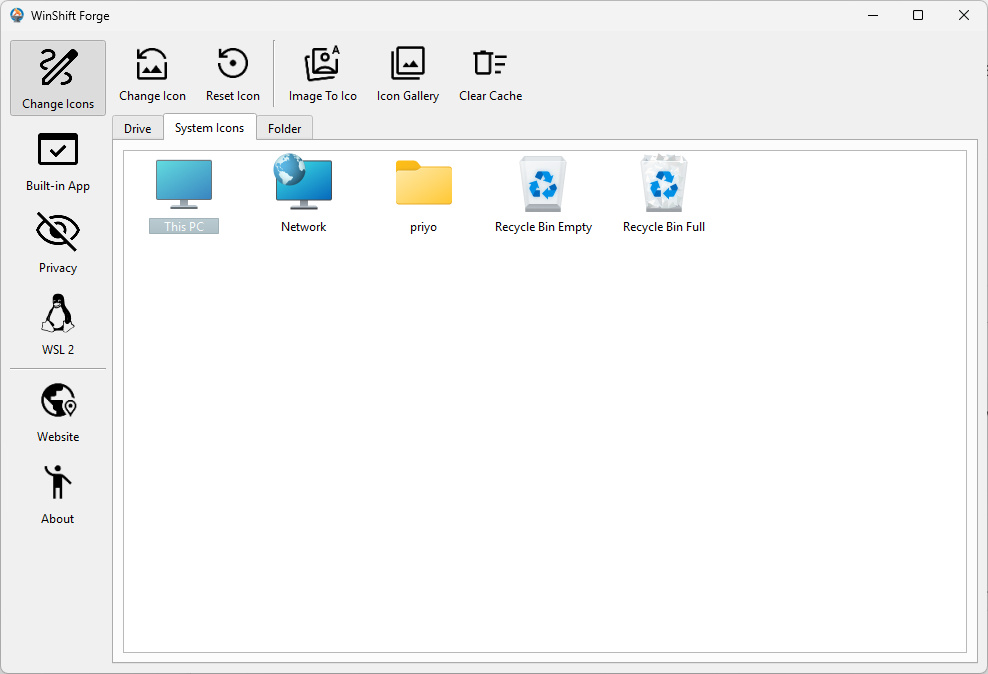 - Open WinShift Forge and navigate to the System Icons tab.