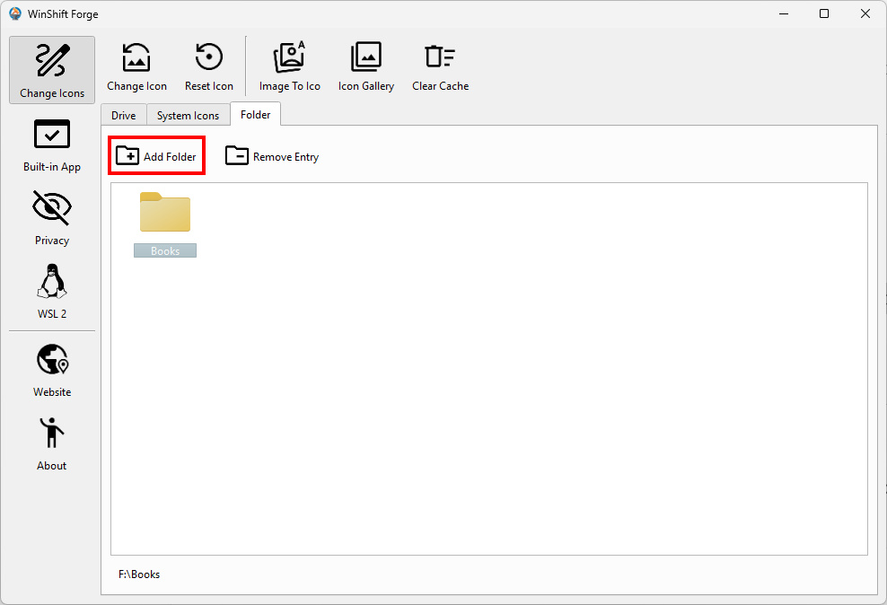- Open WinShift Forge and navigate to the Folder tab.
